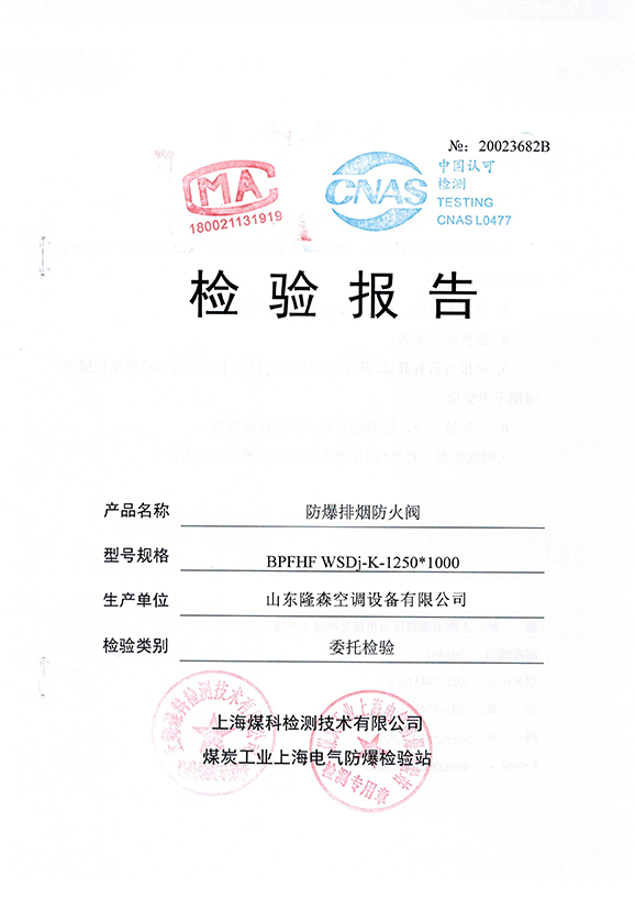 • 防爆排煙防火閥合格證